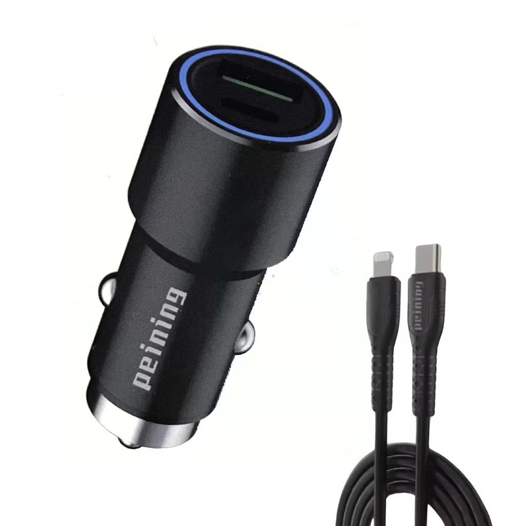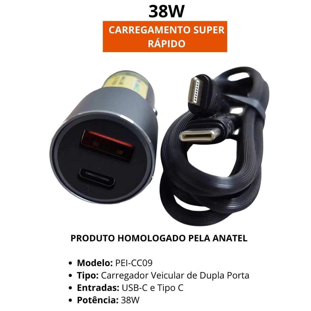 arregador Veicular Turbo 3.4A QC3.0 Entrada USB e tipc Cabo de iOS - Peining PEI-CC09 iOS