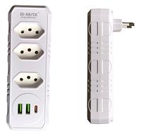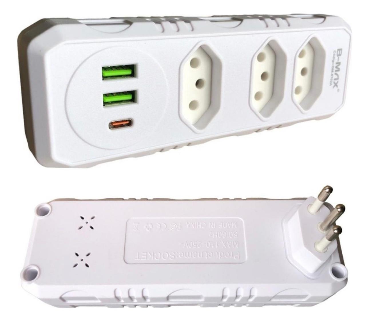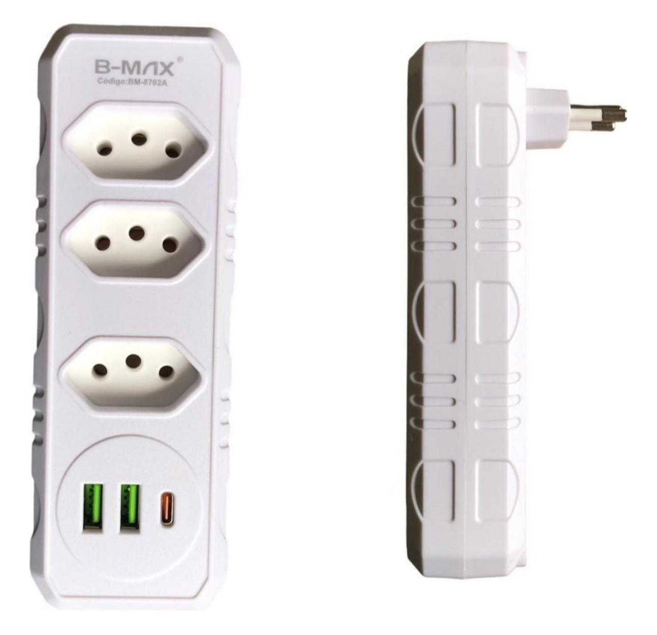 B-max Bm-8702a Extensão 3 Tomadas 2 Usb 1 Usb-c 10a
