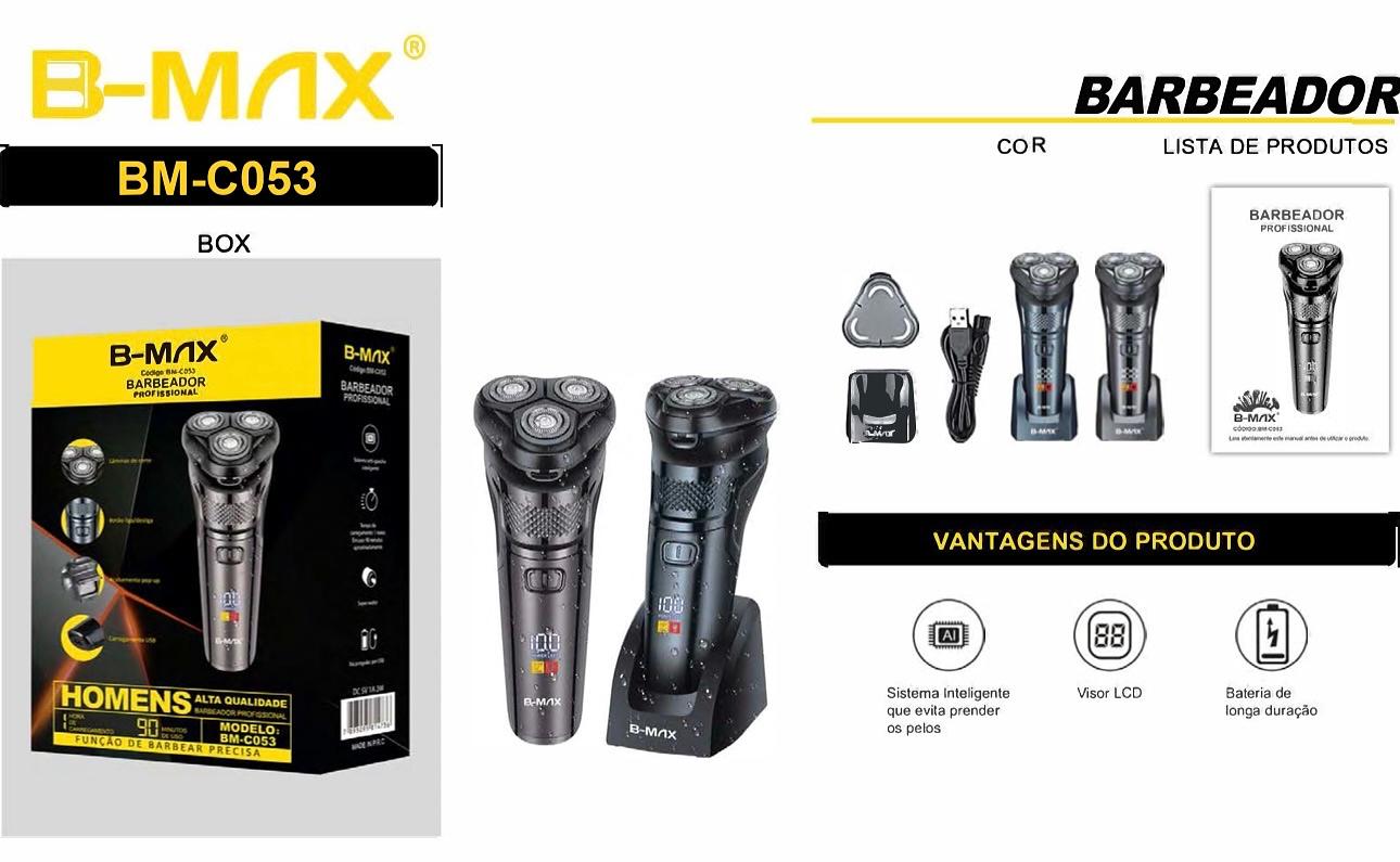 Barbeador Sem Fio Recarregável Ipx7 A Prova D'água Bm-c053
