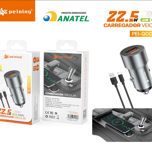 Carragador veicular 22.5W TIPC