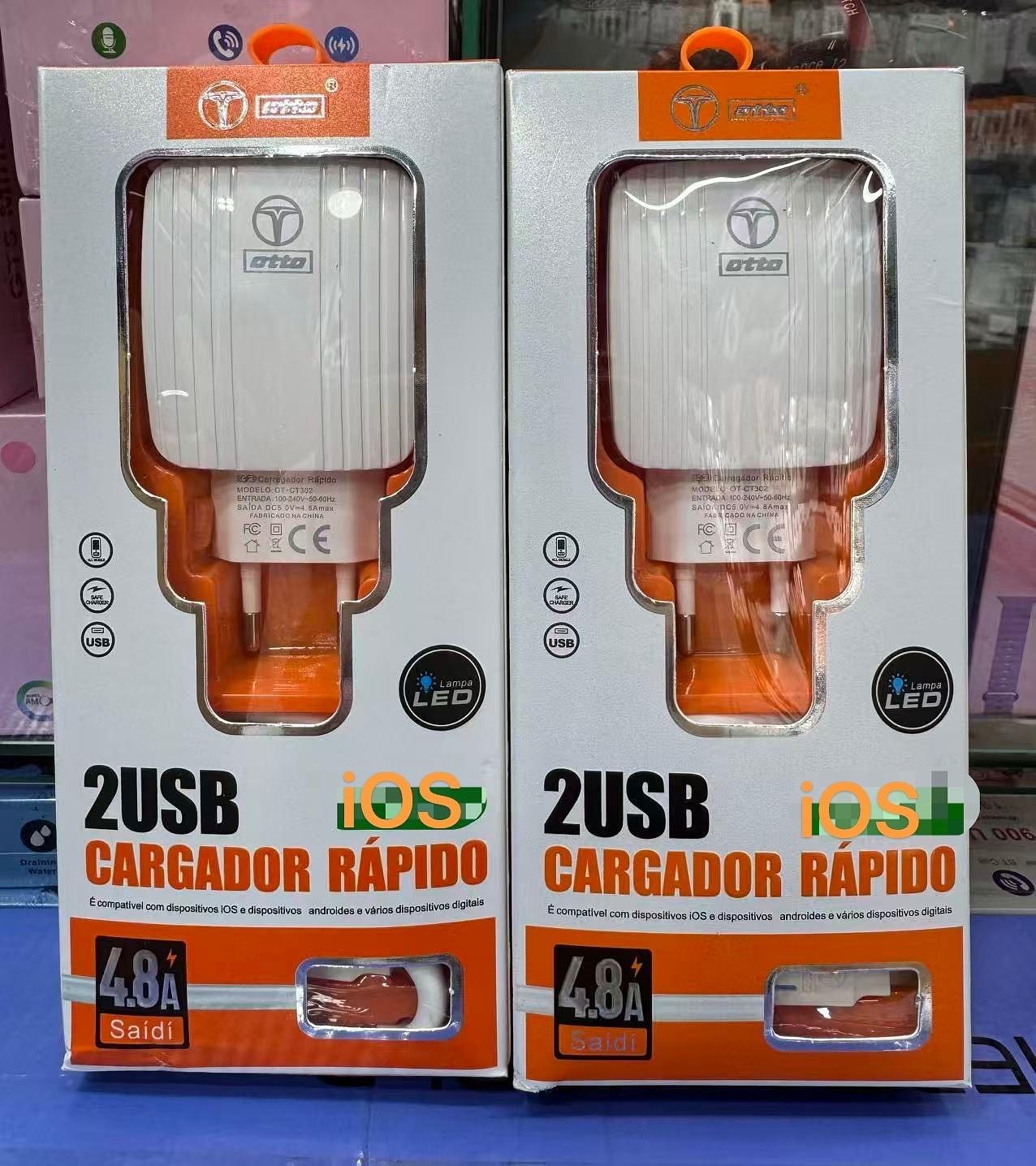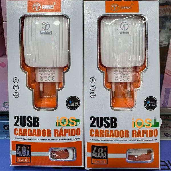 Carregador com 2 USB. Cabo de iPhone. OTTO