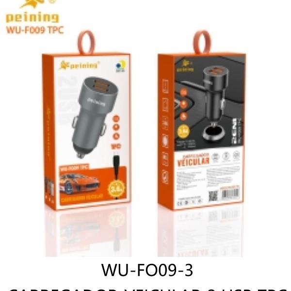 CARREGADOR VEICULAR 2 USB TPC F009 tpc