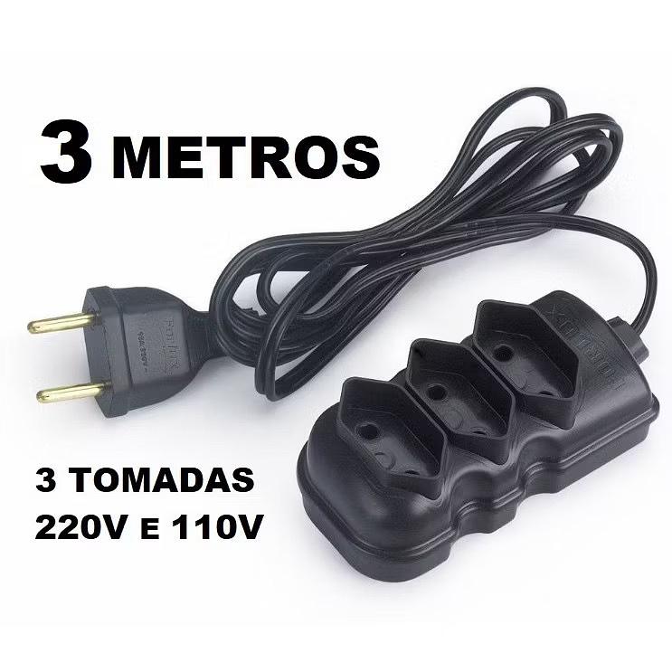 Extensão elétrica 3 Metros Extensão de Energia 3 Tomadas Compacta Bonito
