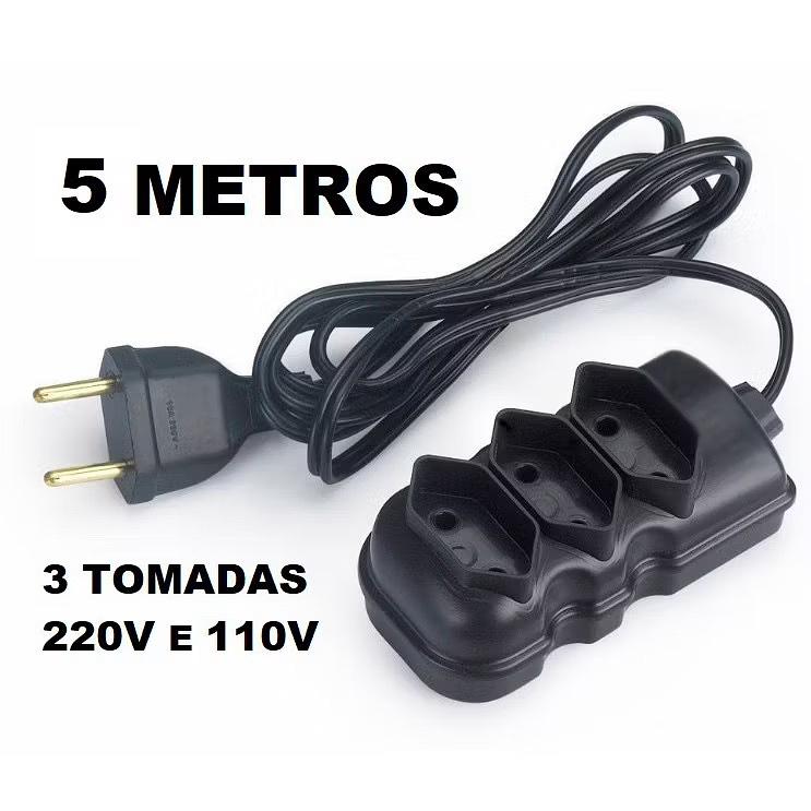 Extensão elétrica 5 Metros Extensão de Energia 3 Tomadas Compacta Bonito