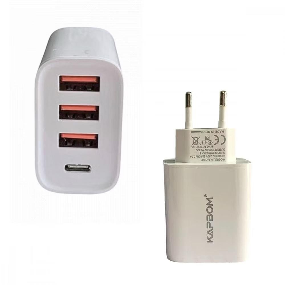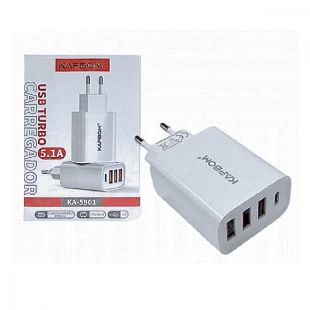 Fonte Turbo 5.1A - 3 USB + Tipo C Kapbom KA-5901