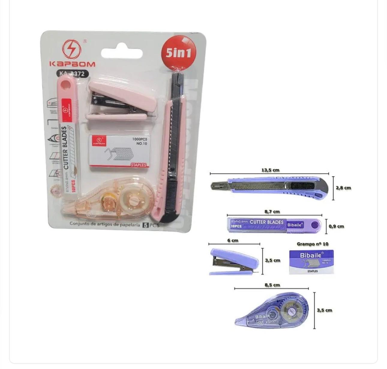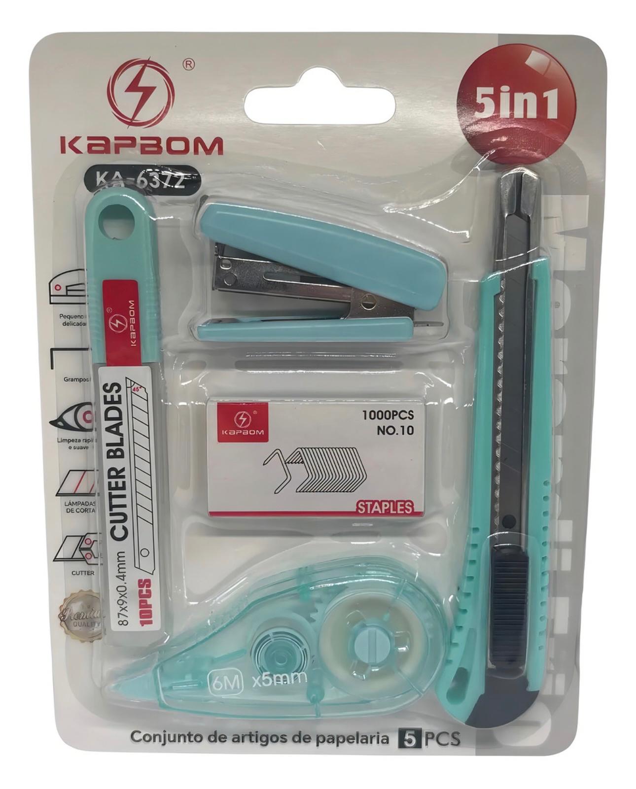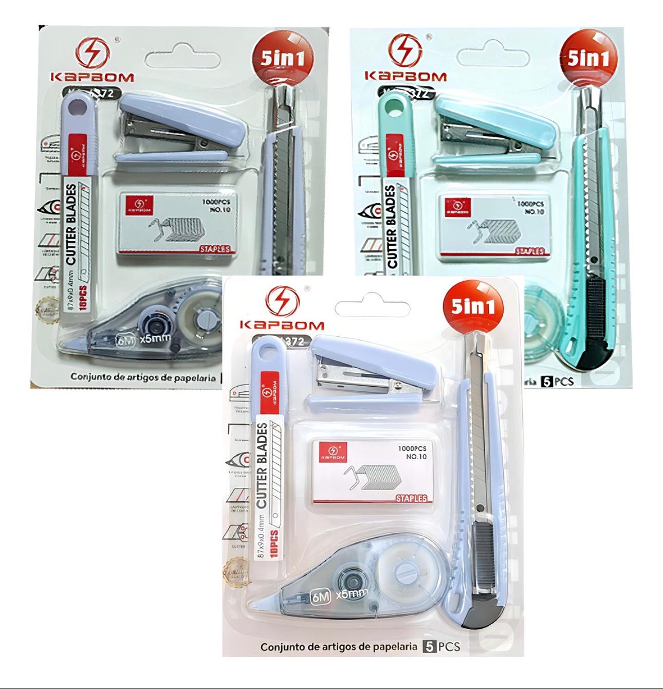 Kit 5pecas. Grampeador Estilete Corretivo Materiais Escolares Papelaria KA-6372