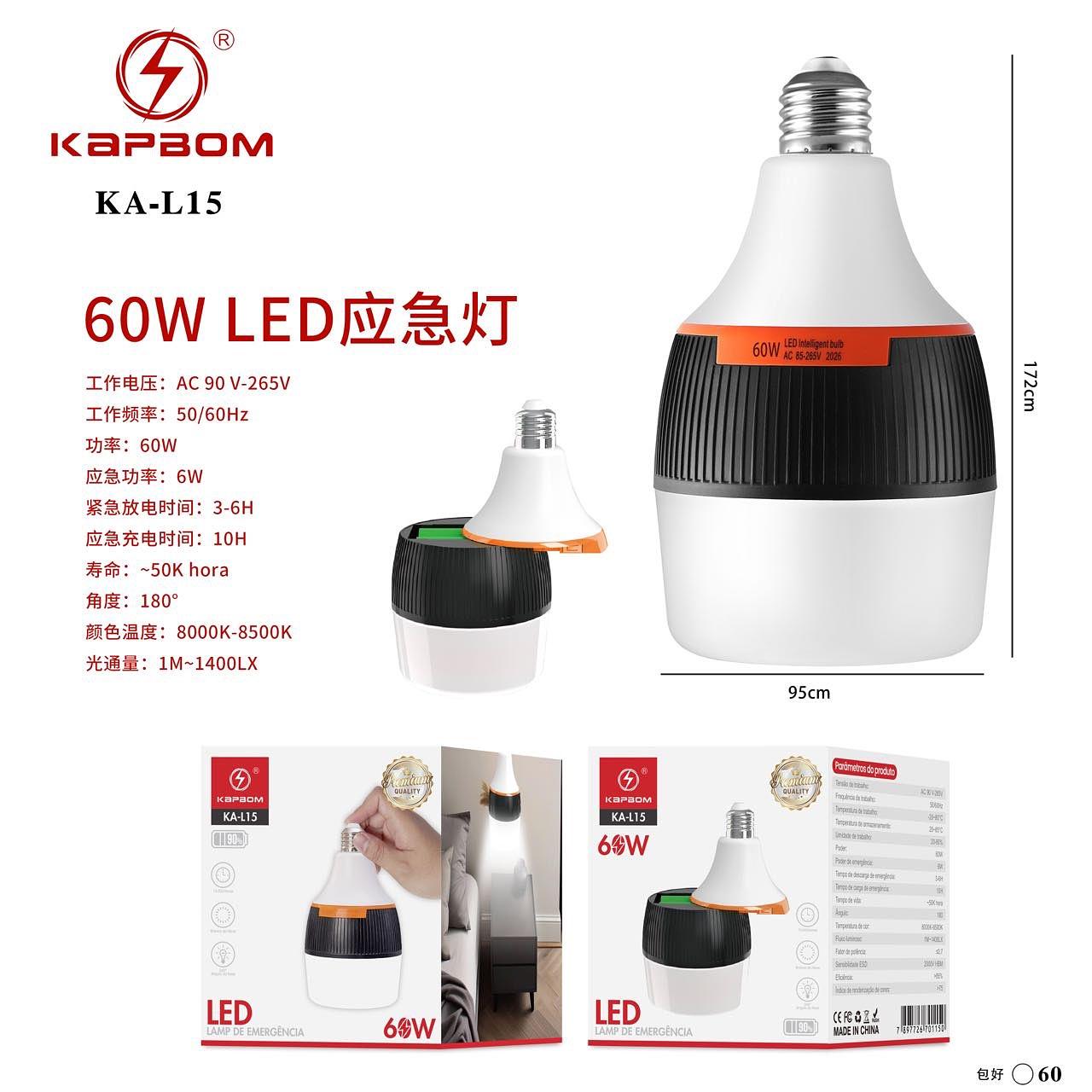 Lâmpada Recarregável Emergência LED 60W