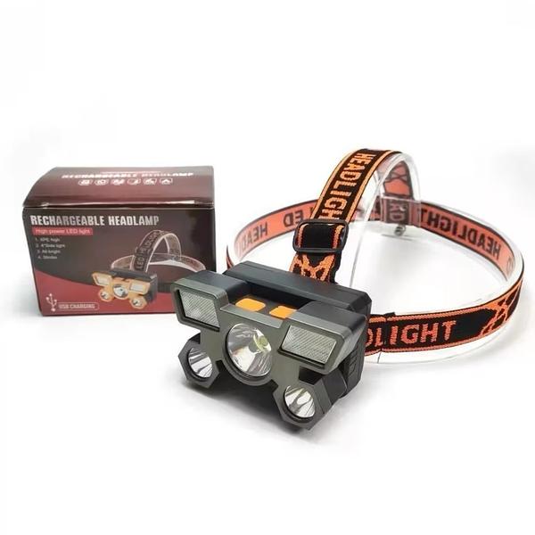 Lanterna Holofote De Cabeça 5 LED's USB Recarregável Cores LED-T01