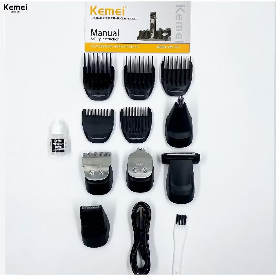Maquina de Cortar Cabelo Aparador de Pelos Recarregavel Multifuncional 14 em 1 Kemei KM-1791