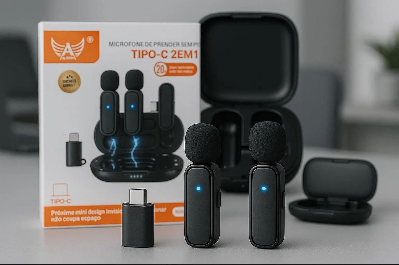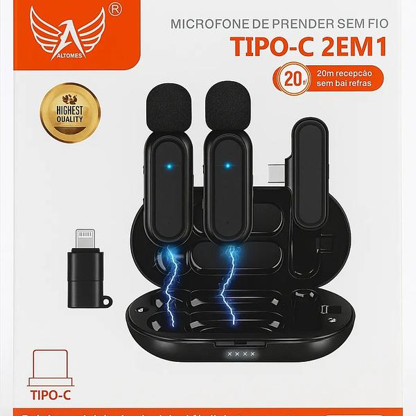 Microfone De Lapela 2 Em 1 Lightning E Tipo C Altomex ComPreto