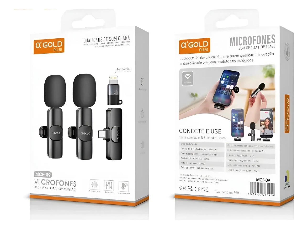 Microfone lapela Gold 2 em 1 tipc/IOS