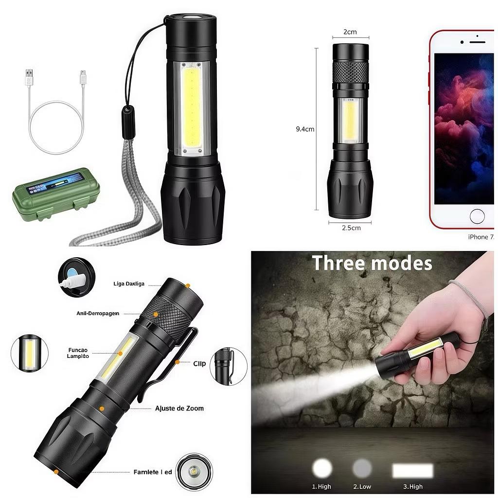 Mini Lanterna Tática Com Led E Zoom Recarregável Usb