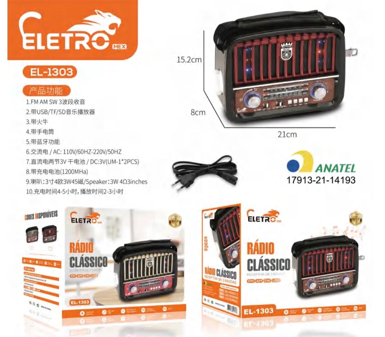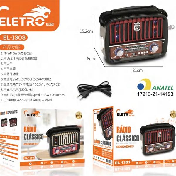 Rádio Vintage Retrô Antigo Bluetooth EL-1303 - Eletromex