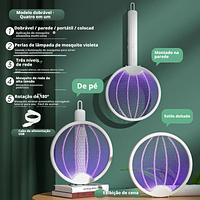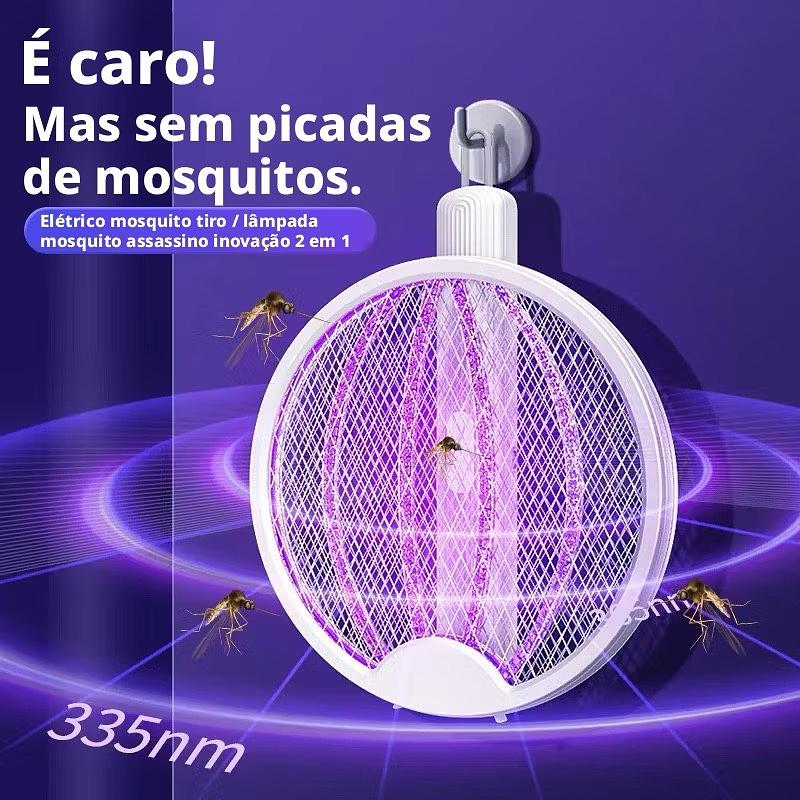 Raquete Elétrica Dobrável Com Luz UV Mata-Mosquitos